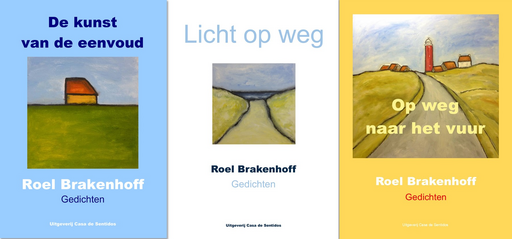My words do the work in these poetry collections. Just my words, no images. Both "De kunst van de eenvoud" (The art of simplicity, 2014) and "Licht op weg" (Light on the road, 2017) and "On the way to the fire" (2023) each contain a collection of more than 30 poems, many of which have previously appeared as poems on my art cards, but in addition, the collections contain a large number of previously unpublished poems.
